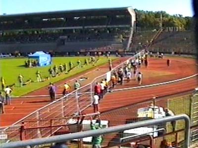 Пока мы занимались "шоппингом", на главной арене начались ринги для первых рингов сук и кобелей рабочего класса. Мы поспешили туда, и некоторое время наблюдали за ходом соревнований. Во время проведения первых рингов все зрители собрались на трибунах. Заполнилась не только центральная трибуна, но и противоположная. Думаю, одновременно наблюдали за ходом соревнований около двадцати тысяч зрителей. Самый главный ринг – кобелей рабочего класса. Как бежит чемпион мира Риккор фом Бад-Болл, видно на одном из стоп-кадров.