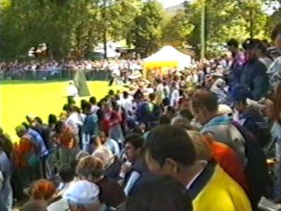 Мы заняли места возле тренировочного футбольного поля, где проходила проверка поведения, и погрузились в море страстей, которые в это время бушевали вокруг. Народу было очень много. Проверка проходит с раннего утра до самого вечера. На каждую собаку выделяется по три минуты (десять собак на каждые полчаса). Некоторые зрители смотрят эту процедуру от начала до самого конца, а многие делают это периодически, покидая стадион на некоторое время, и возвращаясь обратно, когда им это надо. Мы провели на стадионе часа полтора и за это время посмотрели проверку около тридцати собак.