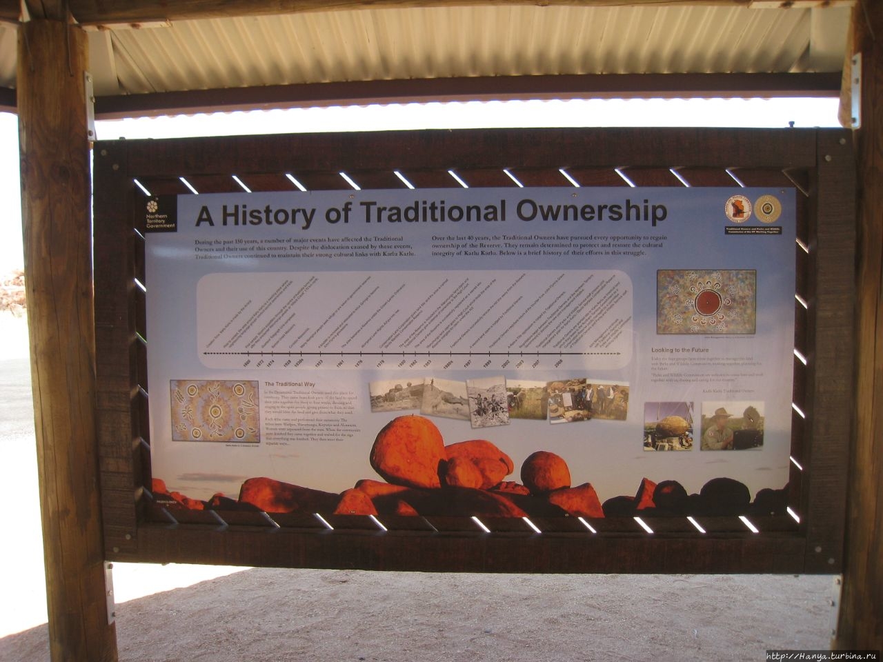 Сегодня все четыре племени объединились, чтобы присматривать за этим местом, поддерживая культурные связи и традиции. Это своеобразная церковь под открытым небом! И здесь следует вести себя соответствующим образом. Земля как обычно у белых завоевателей, была отнята у аборигенов, потом торжественно и формально возвращена, будучи по факту сдана в аренду туземцам. Бизнес и ничего личного! Сегодня вся территория находится под защитой закона Северной территории как зарегистрированное священное место.