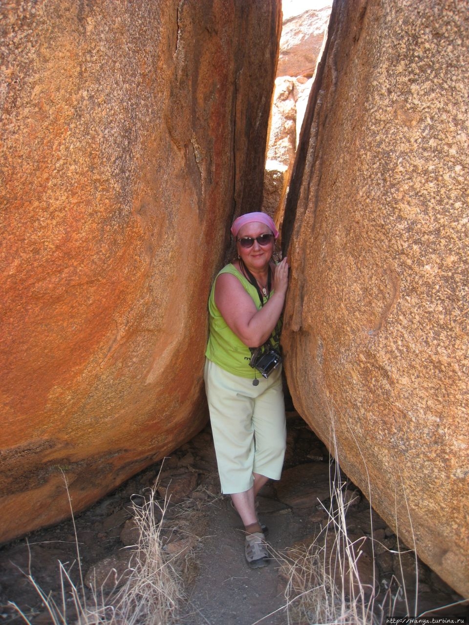 По дороге встречаем два огромных валуна, между которыми можно протиснуться с трудом, и это привлекает нас для фотографирования, после чего за нами образуется очередь.