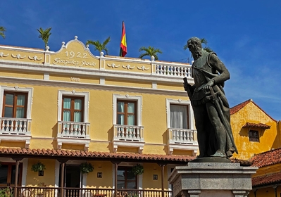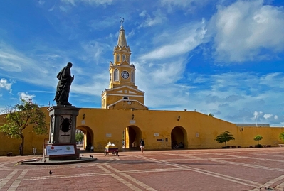 Часовая башня и главные ворота - визитная карточка Картахены. На отрытом пространстве площади установлен монумент Дону Педро де Эредиа — основателю Картахены.