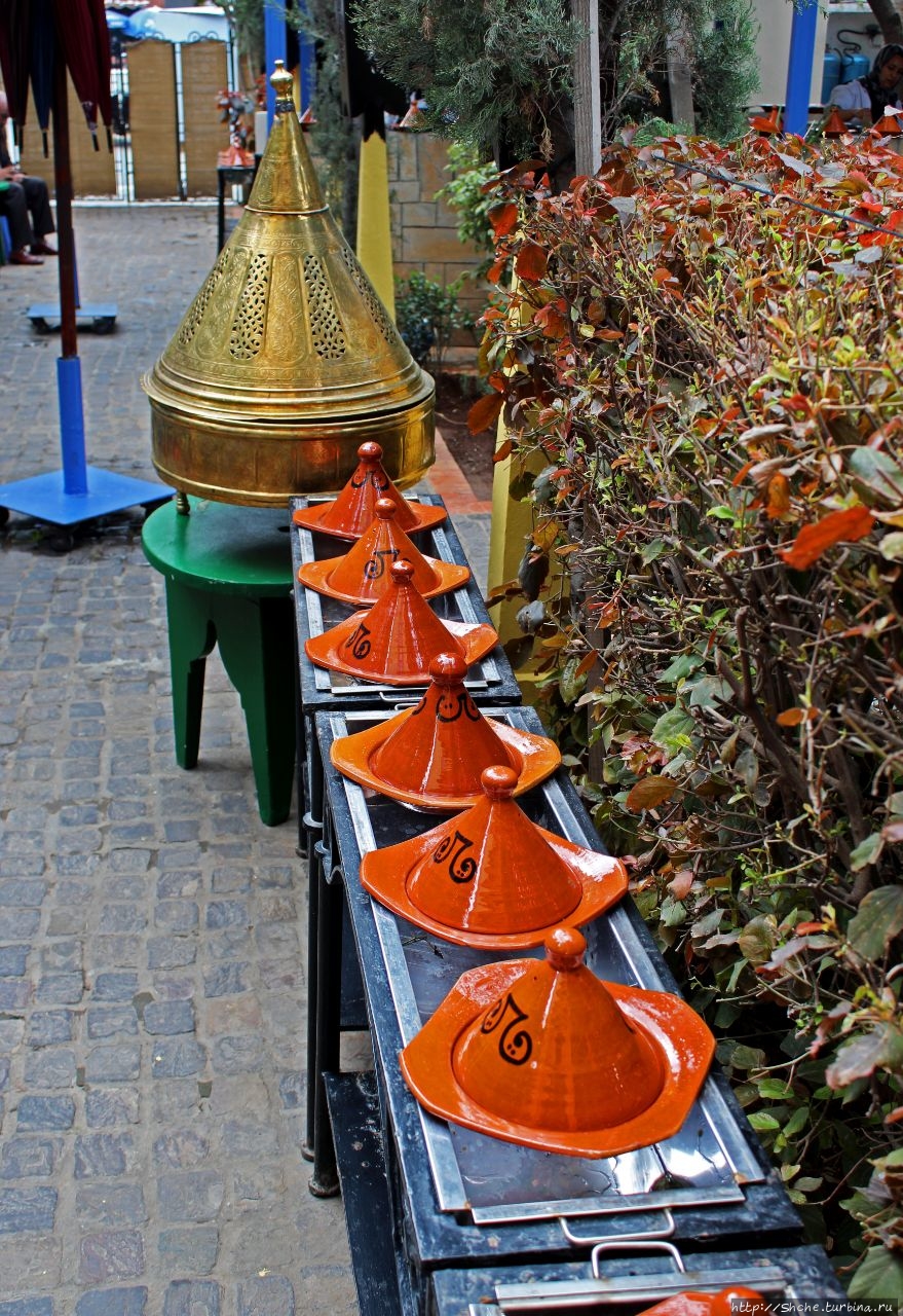 Нашему гиду было известно, что "Ла Скала" — один из лучших ресторанов города, который специализируется на местной кухне. Вот так призывно встретили нас горшки для традиционных марокканских таджинов.
