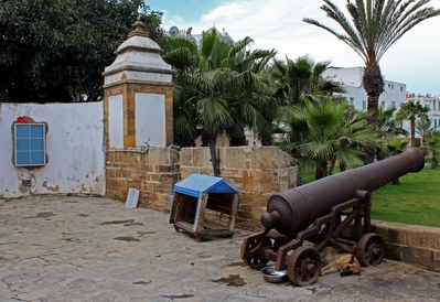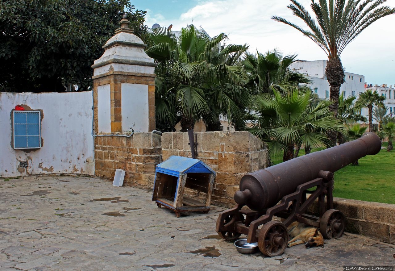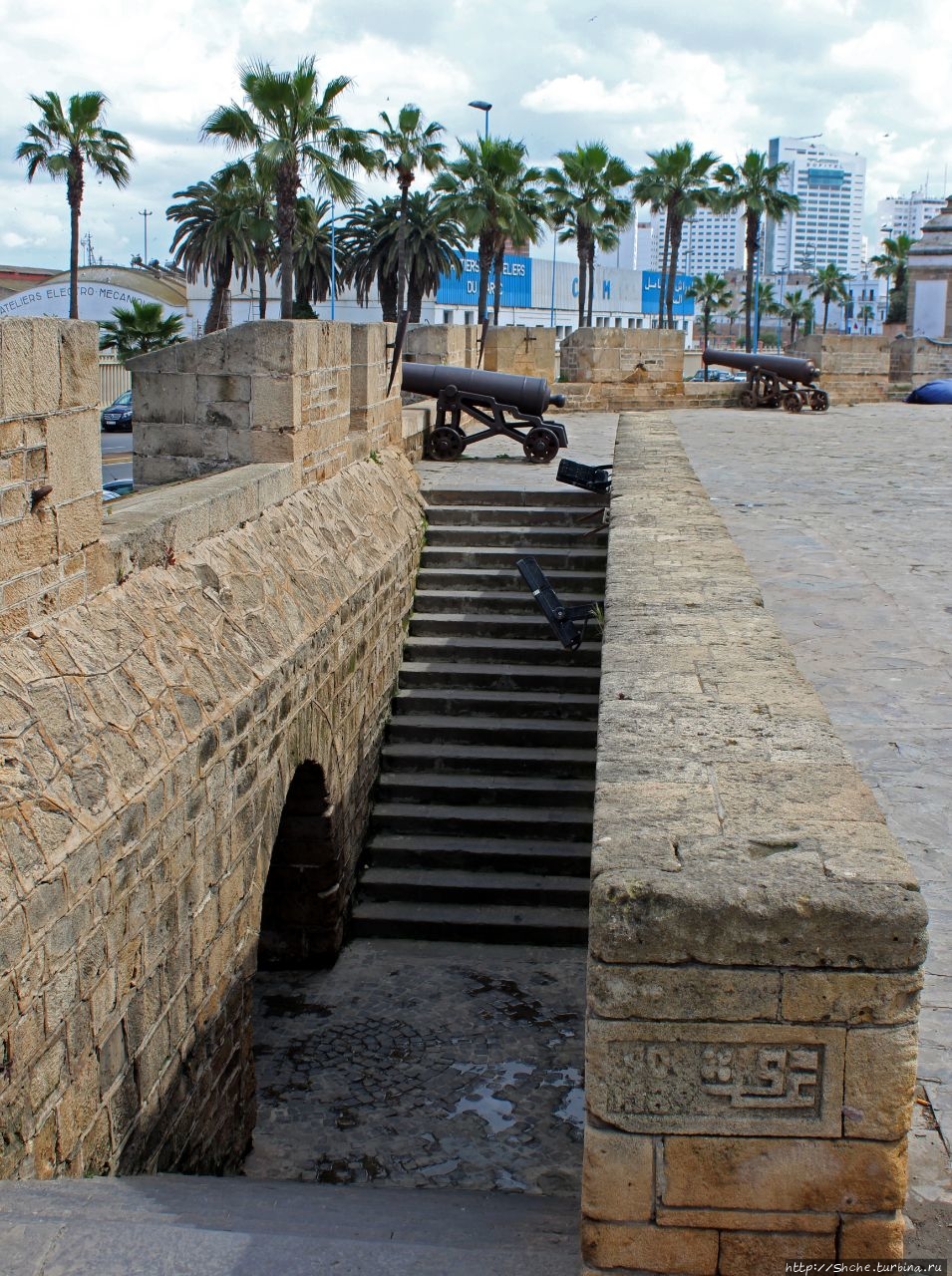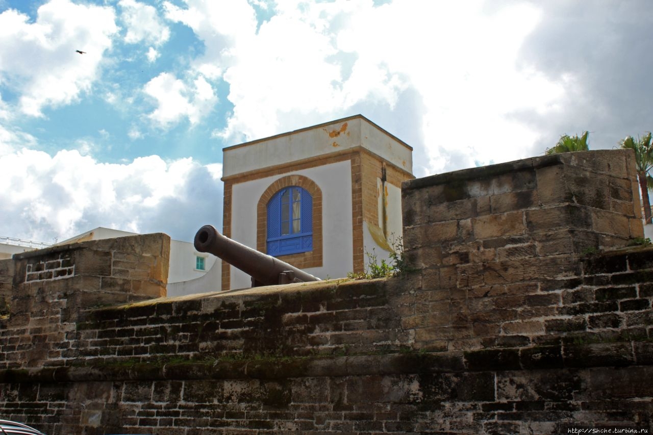 Он заметно выделяется по цвету от привычных белых домов "Белого города" (как известно, название Касабланка имеет дословный перевод "белый дом") и ... наличием направленных в сторону грузового порта старых пушек.