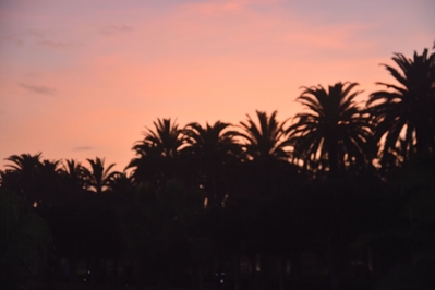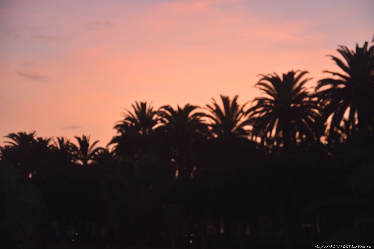 Зимой дни короткие и свет вечерней зари подкрашивал розовым парковые аллеи высоких пальм,