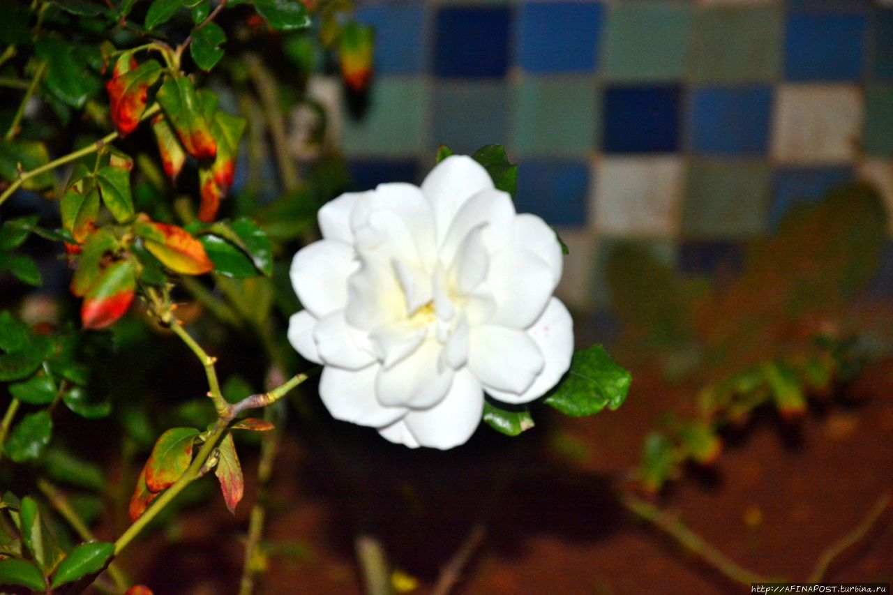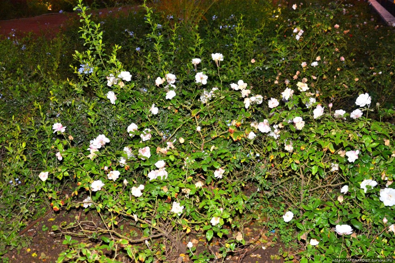 и сгущался в продольных бассейнах, идущих параллельно дорожкам с цветущими белыми розами.