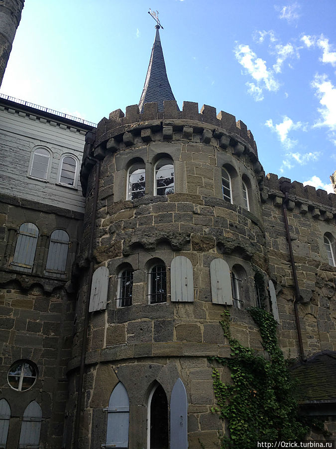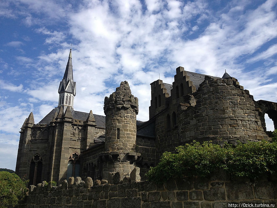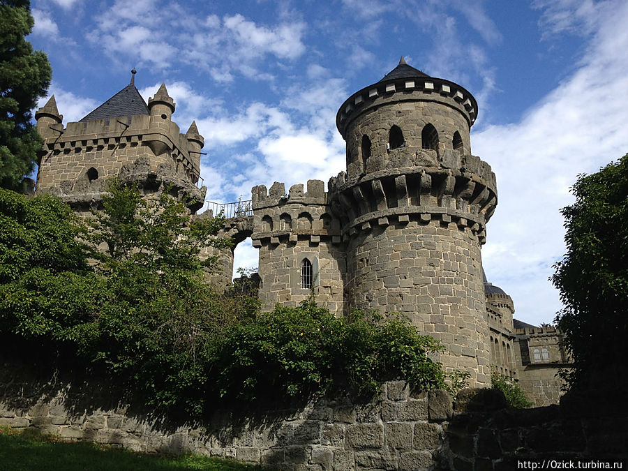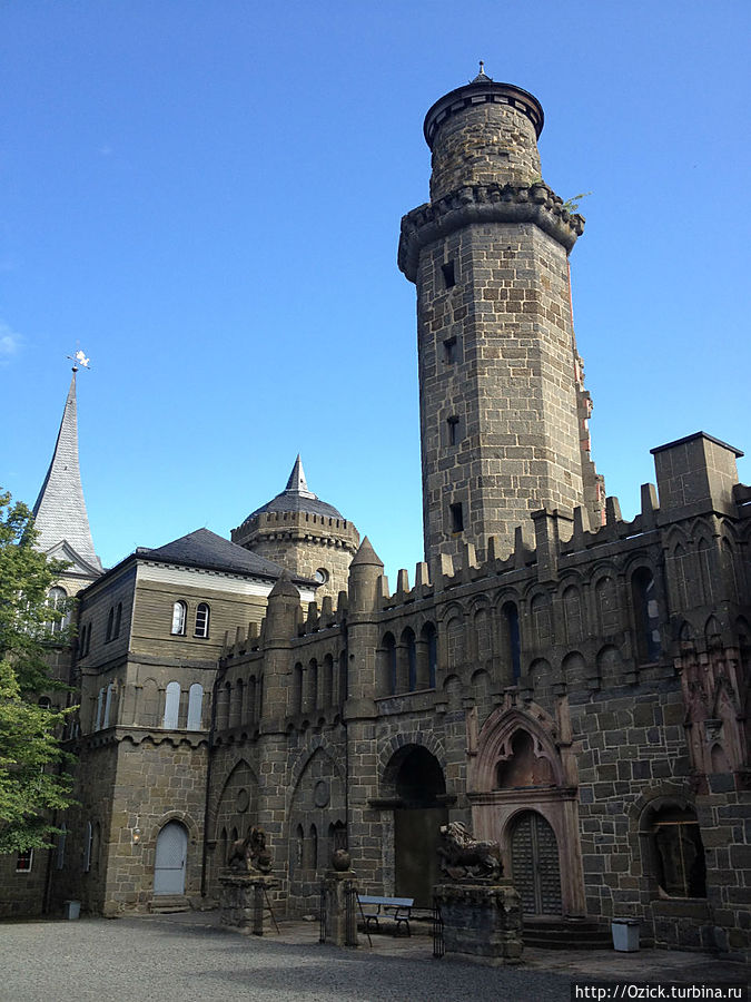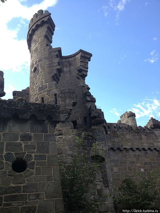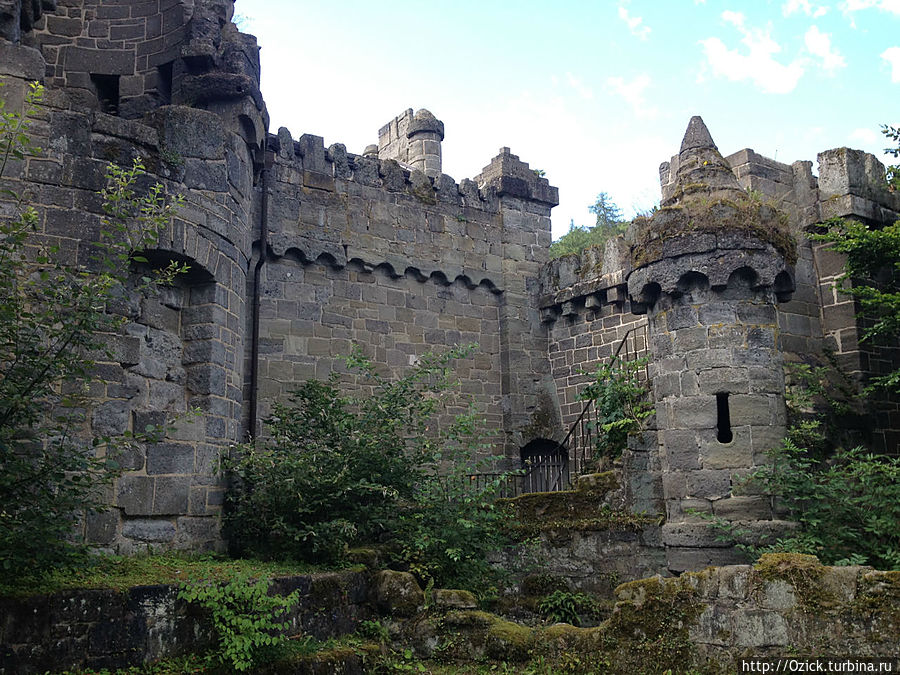 Поэтому замок изначально был спроектирован, модным в то время архитектором Генрихом Критофом, и строился со всеми атрибутами старинного английского рыцарского замка, в том числе со следами жестоких боев и долгих осад. Собственно здесь, в возведенных руинах, Вильгельм IX и похоронен.