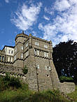Так случилось, что в Левенбург мы приехали очень рано, практически на рассвете. Поднимаясь наверх по дорожке парка, в игре теней с солнечными зайчиками, пытались угадать очертания замка, но неожиданности не произошло. Пройдя, строго по указателю, через арку небольших, каменных ворот мы вышли на светлую поляну, где собственно сам замок и находился.