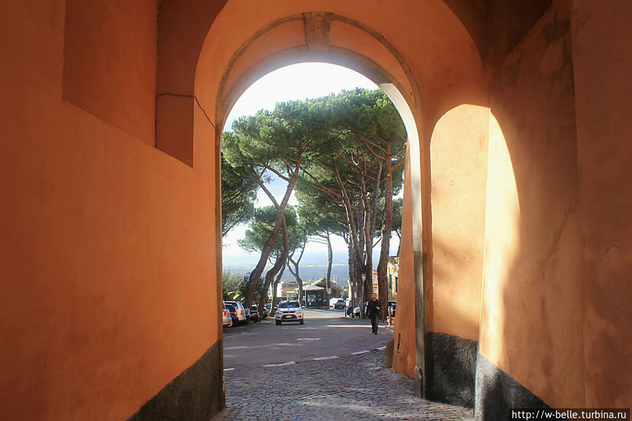 Кастель — Гандольфо — это территория государства Ватикан. Здесь все по серьезному и даже красавцы — гвардейцы те же.