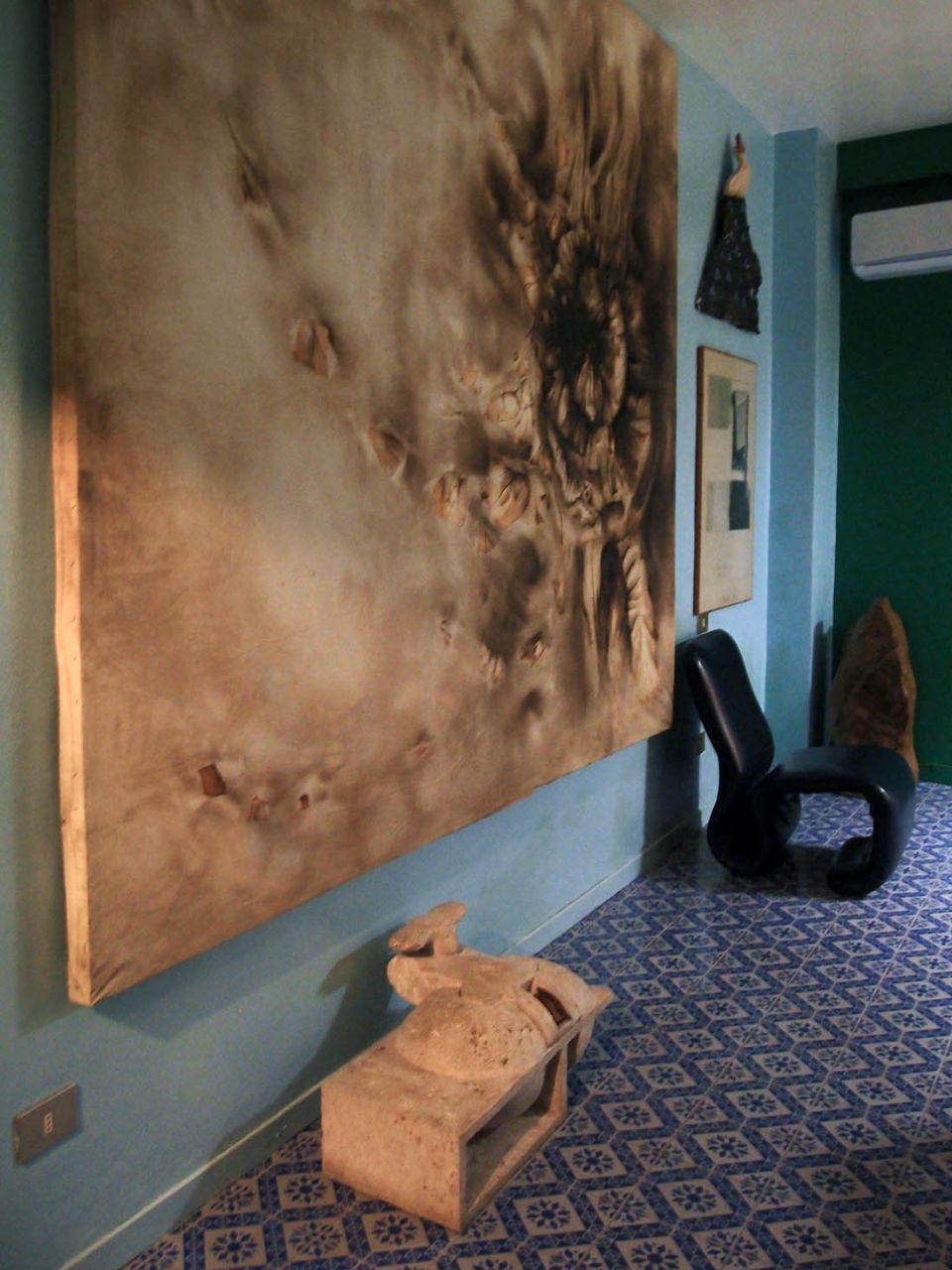 Нам повезло больше. Большущий номер, на синих стенах которого, как в зале музея, висели огромные полотна и маленькие картины, какие-то керамические черепки и странной формы скульптуры были даже на полу.