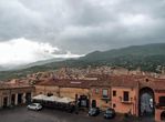Не радовала только погода, день был пасмурным с самого утра, а зонтики мы легкомысленно не взяли. Теперь, в Кастельбуоно тучи в буквальном смысле зацепились за верхушки гор и пролились.