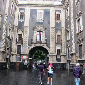 Дальше мы пробуем воспользоваться нашим любимым методом и заблудиться. Как бы не так. Катанские улицы прочерчены по линейке. Правда, второстепенные улицы менее ухожены, зато именно там прячутся прелестные ресторанчики. Мы даже наметили один, только отложили на потом. В результате мы снова оказались на Университетской площади. Вот университет (и тут Вакарини руку приложил, правда, не он один). Напротив – гимназия. Удачное расположение.