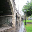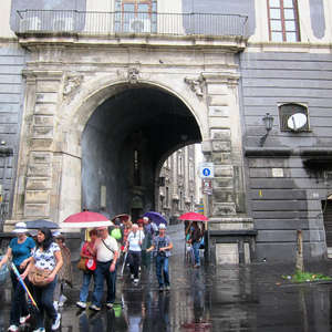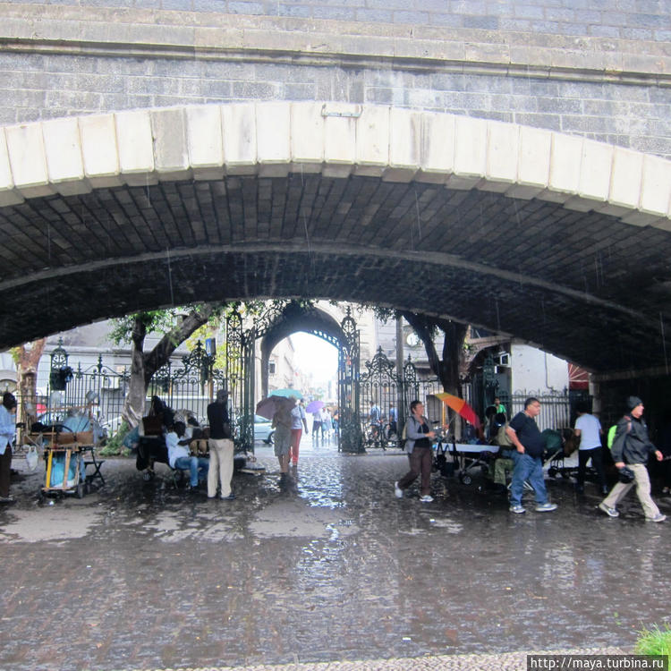 Когда мы вышли, дождь все еще шел. Моя накидка-капюшон из клеенки надежно защищала меня от дождя, а вот мужу пришлось купить зонтик. Надо было купить большой. Маленький не выдержал до конца дня. Мы вышли за пределы старого города через арку — Порто Узеда. Прошли через еще один парк: Пачини. А за парком, мы, наконец-то, нашли людей. Они уютно устроились под мостом. Местные – более удобно, а туристы – где придется. Искренне надеюсь, что дождь закончится быстро, и они смогут выйти наружу. А мы оставляем дважды серый от туч и вулканического камня город. Нам пора в отель. А если вы ищете город, который хочется полюбить – вам сюда. Особенно если учесть, что здесь есть пляжи.
