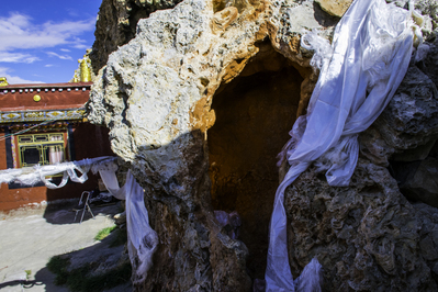 Отсыл к женскому органу Ваджраварахи очень явный. Один раз мне удалось побывать в храме Ваджраварахи недалеко от Кайласа, в него пускают всех желающих. И вагина дакини там очень легко угадывается в очертаниях пещеры.