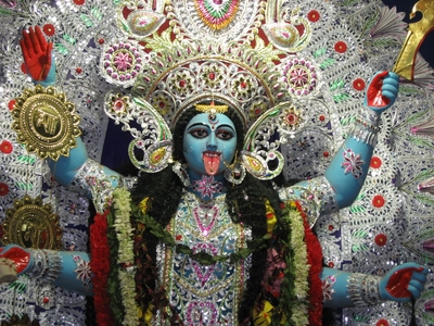 Также распространено мнение, что храм Гухьешвари посвящён богине Кали. Кали является яростной формой Шакти и появляется в мифологии как уничтожитель демонов. Гнев Кали настолько ужасен, что грозит существованию мира, поэтому особая тема в мифологии — усмирение Кали. Также в мифологии Кали — защитница богов и дарующая освобождение. Последователи тантрического шактизма и различных тантрических сект поклоняются ей, как высшей реальности или Брахману. Кали является объектом поклонения множества культов и религиозных течений. Кали часто изображается стоящей или танцующей на своем супруге, боге Шиве.