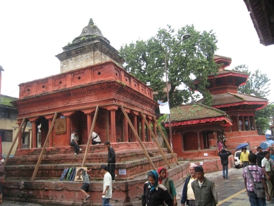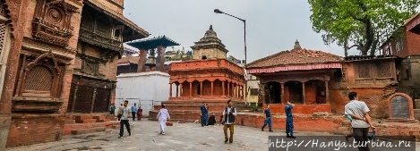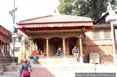 Храм Бхагвати с сувенирной лавкой на первом этаже. Ч.23) мы по узкому проходу плавно втекаем на следующую площадь. Строго говоря, территорию площади Дурбар составляют три прилегающих друг к другу площади.Её южная часть — это площадь Басантапур с её многочисленными торговцами сувенирами. Западная и северо-восточная, соединяющаяся с входом во дворец Хануман Дхока и несколькими храмами — это Дурбар Сквер, а северная — Макхан Тол, переходящая в одноимённую улицу, являвшуюся в прошлом главной дорогой города.