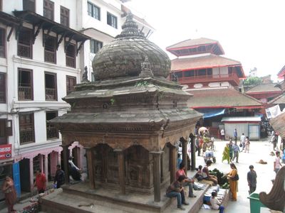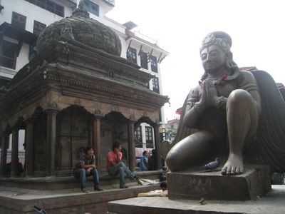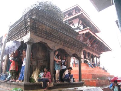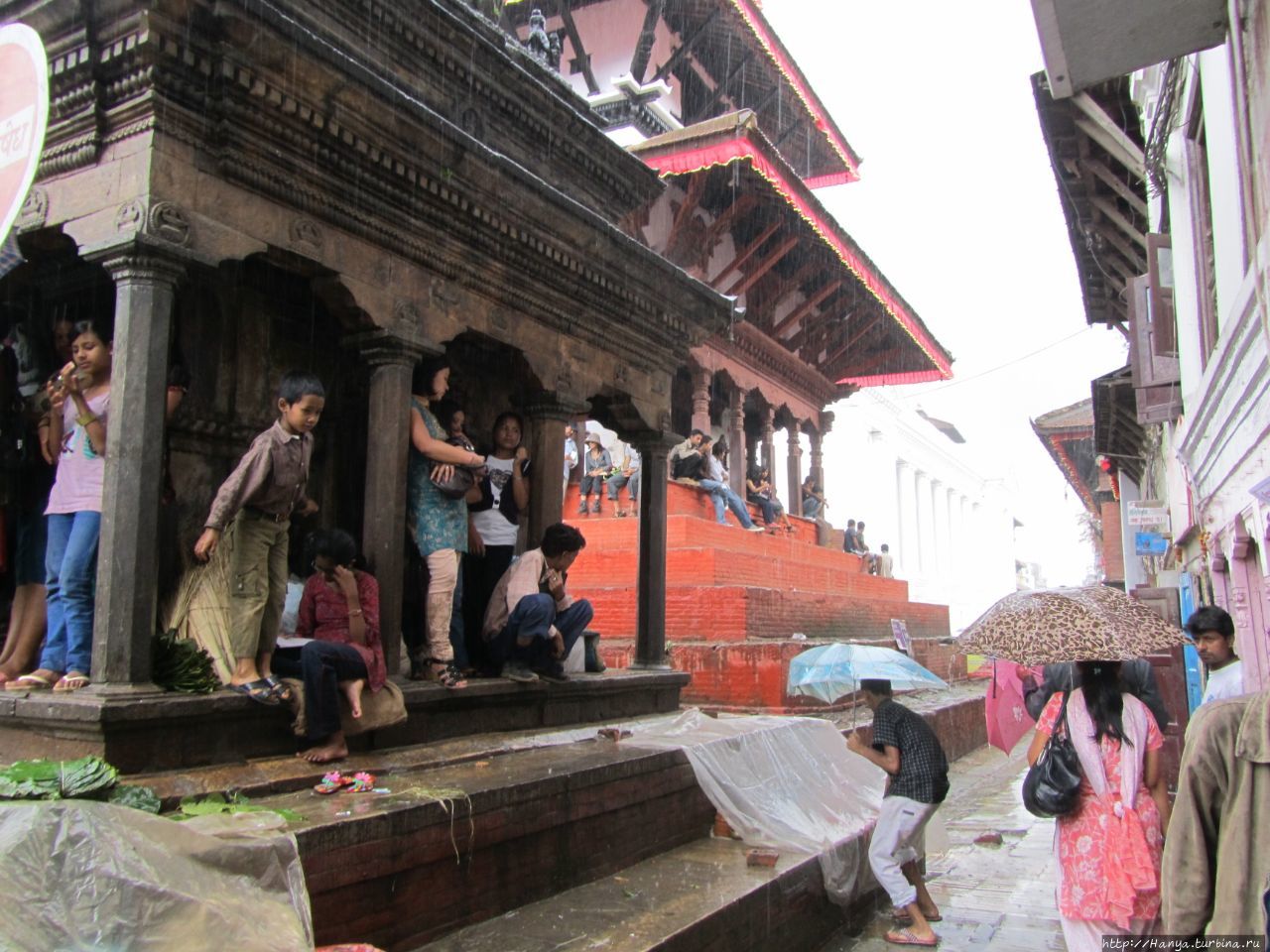 Человек-птица Гаруда – ездовое животное бога Вишну. Ч.13) втиснулся небольшой, но симпатичный храм Bimaleshwor Temple (Bhimeleshwara, или Vimaleshwar Temple) с куполом-крышей. Почти все места на ступенях по периметру у него заняты торговцами и праздными местными зеваками.