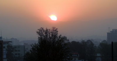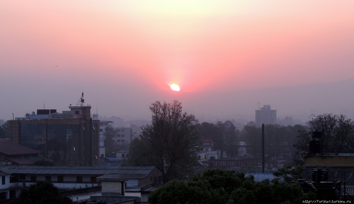 Город Катманду находится в громадной долине на высоте около 1300 метров, окруженной горами до 2 тыс метров, за которыми с севера уже идут Гималаи. Здесь трудно увидеть хорошие рассветы и закаты, так как даже если над горами нет облачности, то над городом постоянно висит смог от дорожной пыли и мночисленных печурок.