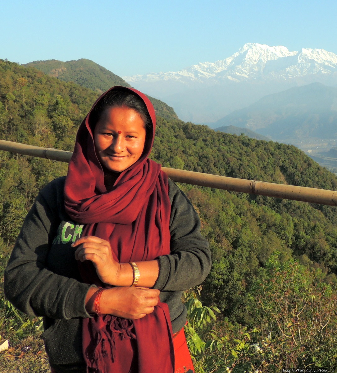 В 6.06 первыми лучами солнца осветились несколько самых левых вершин этой гигантской горной гряды — Южная Аннапурна (7219 м), Аннапурна 1 (8079 м) и красивый пик Мачапуччара (6993 м), который все туристы сразу принимают за Аннапурну. Защелкали фотокамеры и все стали делать фотографии типа «Я и памятник Ленину».