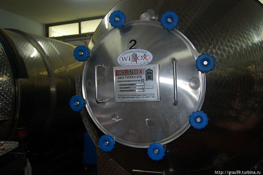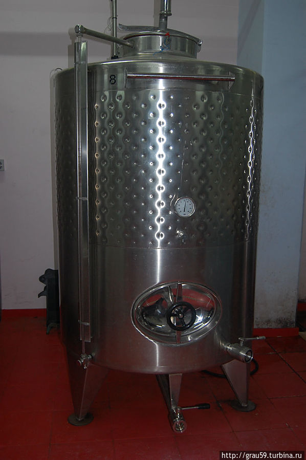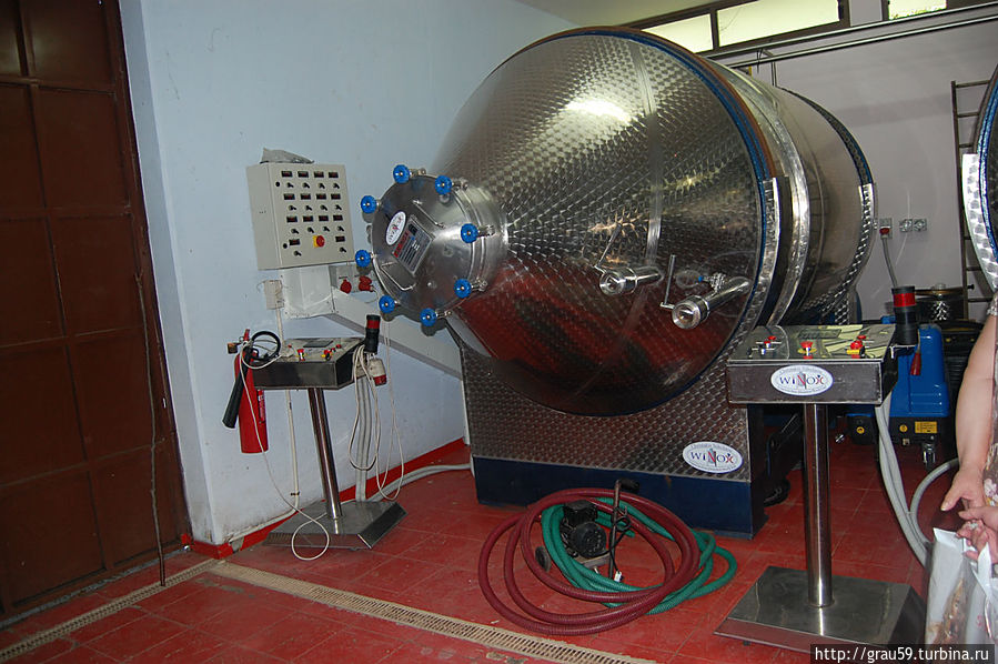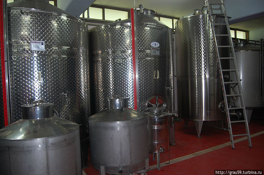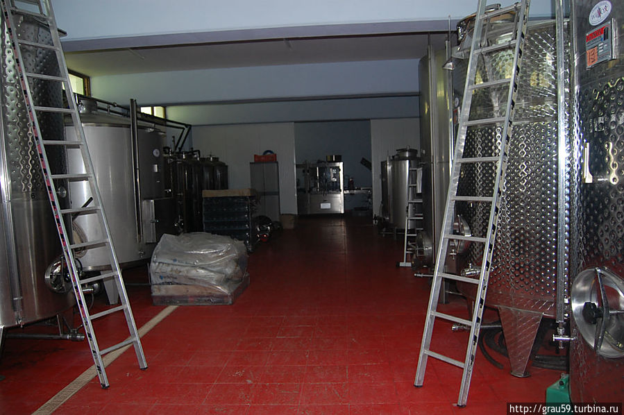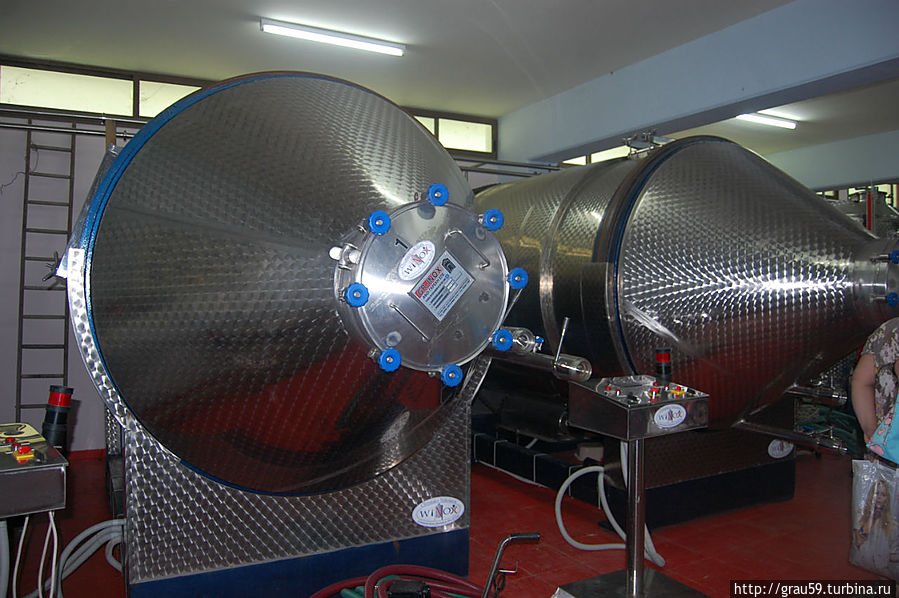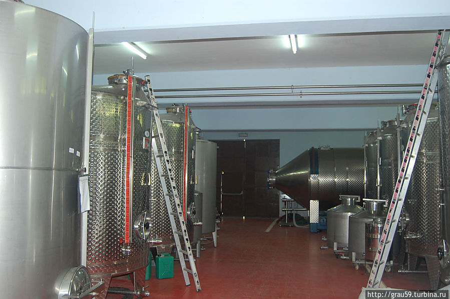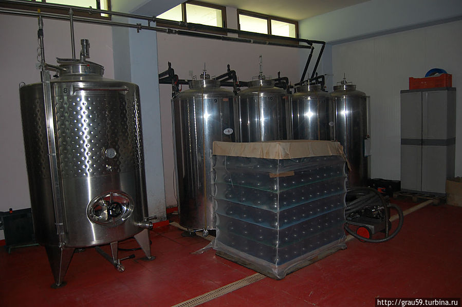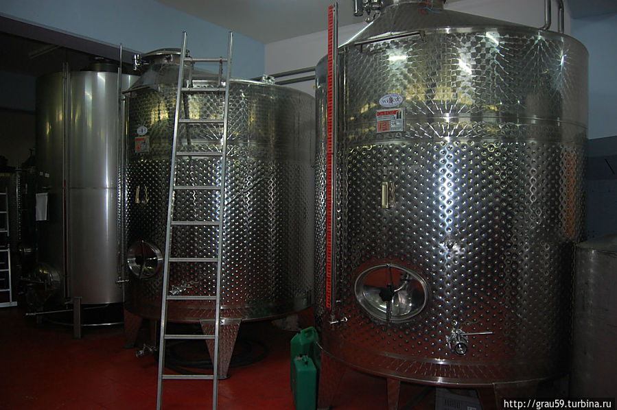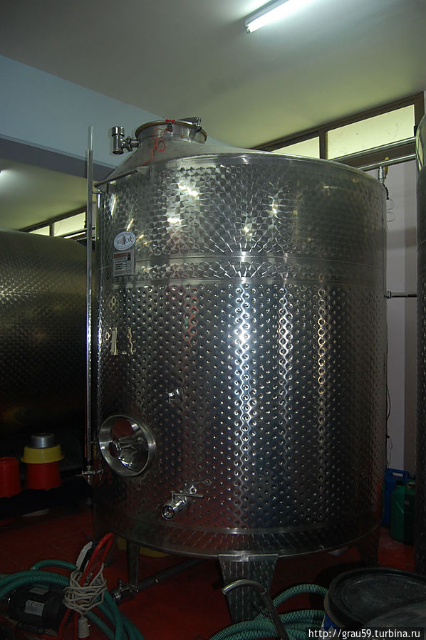 где стояло оборудование для производства вина. Мы не специалисты, но блестящие чаны произвели впечатление.Здесь мы выслушали повествование про здешних виноделов, занимающихся производством вина более трёхсот лет.