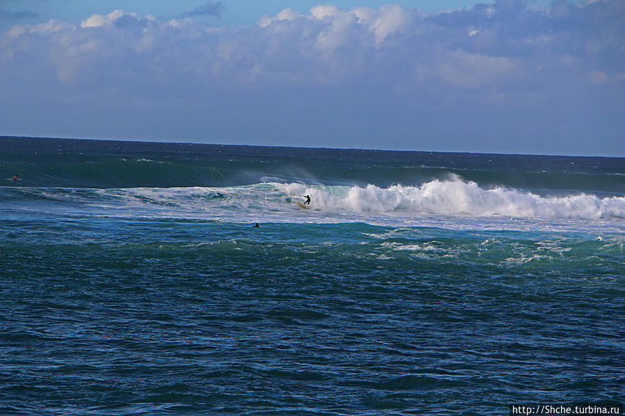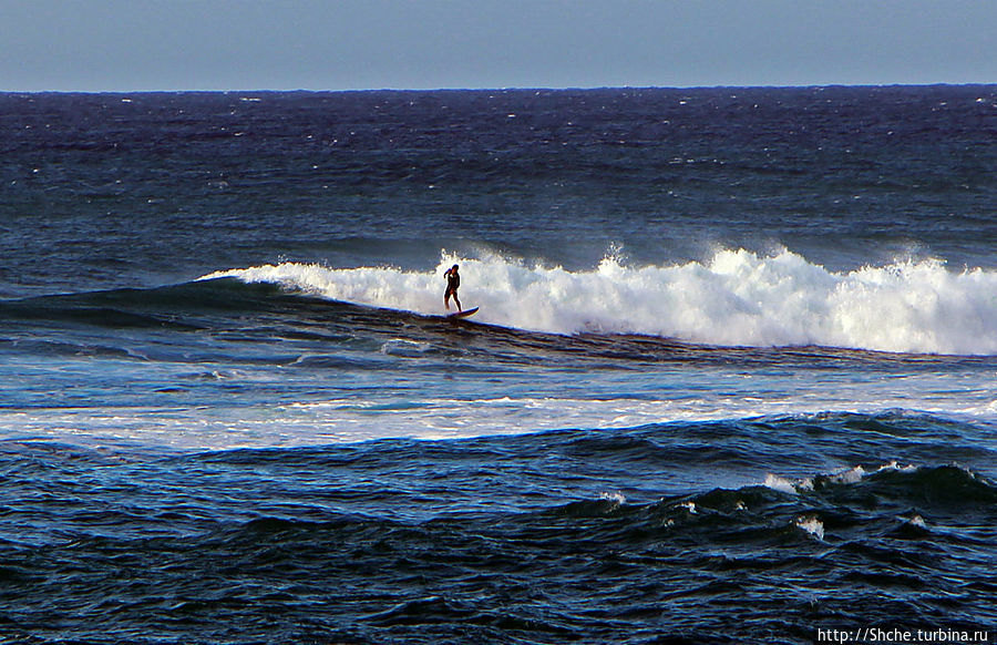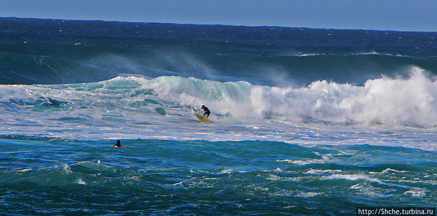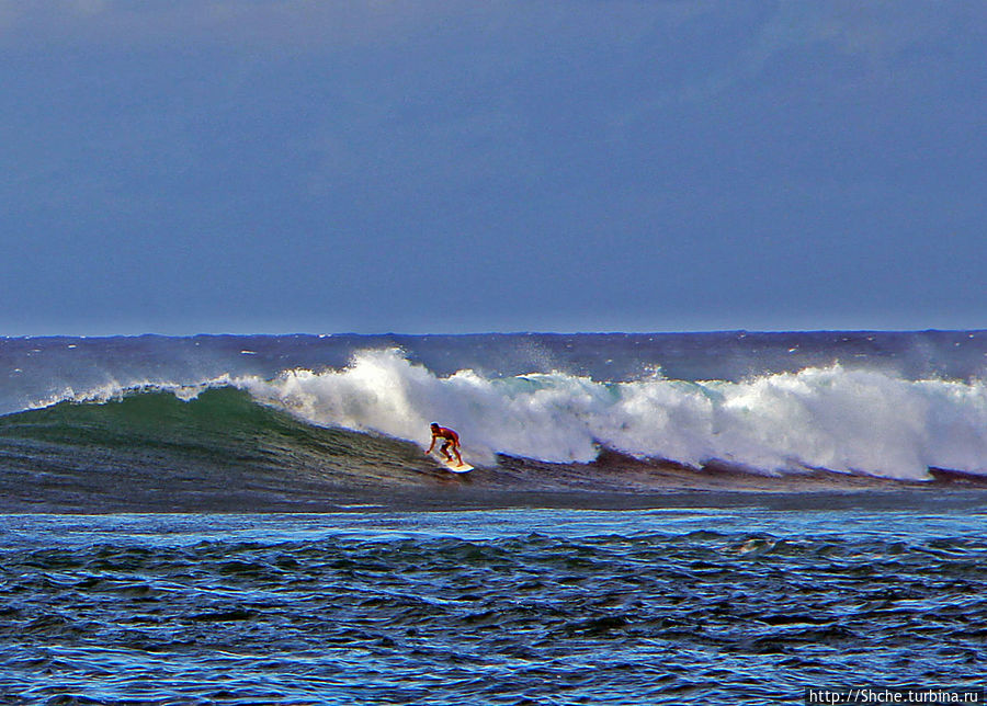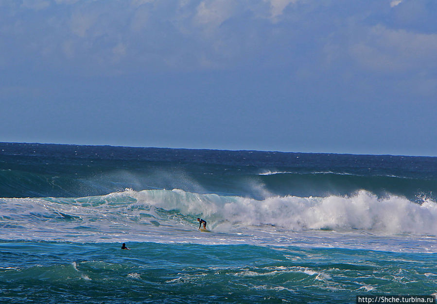 Самым любопытным зрелищем, привлекающим десятки туристов, отдыхающих на Гавайях на Оаху, на север острова по вечерам есть наблюдение за удачными и не очень попытками серферов покорить волну.
