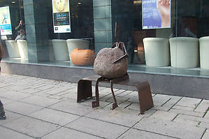 О том, что Лайсвес аллея — единое творческое пространство, я узнал только во время последней поездки, когда на мои глаза попала вот эта скульптура-вывеска.
