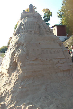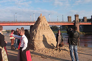 25 тонн песка на набережную Немана привезли пятницу, за неделю до праздника. Песок засыпали в специальные формы и спрессовали.