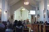 Внутри храма в это время как раз идет служба. Заходим. Две пожилые монашки по очереди ведут службу на литовском языке. Иногда подпевает хор из нескольких прихожан (лучше бы они молчали)