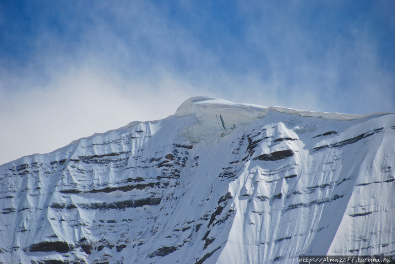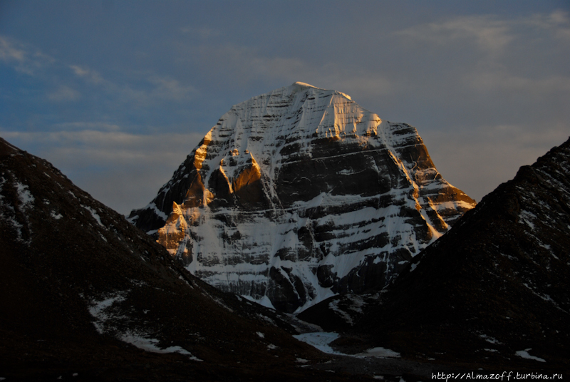 «Кора» начинается от поселка Дарчен и идет по долине Дарпоче, мимо западного «лица» Кайласа. Напротив, на другом берегу долины монастырь Дира Пук, с одной из пещер Миларепы на его территории. Мне удалось посидеть в пещере в медитации около получаса. Пока сидел, в пещеру пришли три местные бабушки, попросили их благословить текстами, по которым я медитировал, что я и сделал. На выходе из пещеры меня перехватила интендант местного Ламы-настоятеля, и я с бабушками попал к нему на аудиенцию. Местный Лама немного говорит по-английски, ему лет 40, улыбчивый, дал мне лепёшку из подношения, которое сделали для него бабушки, и попросил съесть её с друзьями на следующее утро. Сходили с Палычем под северную стену Кайласа, за два часа туда обратно. Стена впечатляет. На вершине по индуистским традициям живёт Шива, но мне этот синий господин малоинтересен. По буддийской традиции на вершине Кхорло Демчёг (Чакрасамвара), главный йидам школы Карма Кагью.