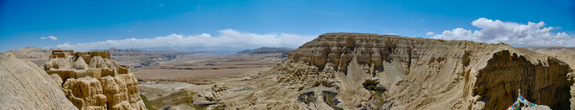 На третий день, преодолев 56 км пути, мы немного уставшие вернулись в Дарчен. Решили не ночевать в Дарчене, а рвануть до посёлка Джада, что в тибетской перди, но в окружении древних королевств Шаншунг и Гуге, откуда в 10-м веке пошла вторая волна распространения буддизма в Тибете. Переехав пару перевалов и преодолев 120км строящихся дорог, оказываемся в королевстве Гуге, которое по преданию считается легендарной Шамбалой. Песчаный пейзаж Толинг похож на каньон Чарын, только порода не такая красная и по размерам раз в 100 больше. И каньон в данном случае реки Сатлендж , самого крупного притока Инда. Посетили пещерный город Цапаранг, столицу королевства Гуге. Пещерный комплекс на горе высотой 300м. На самой вершине королевский дворец (ну очень маленький). Китайцы вначале доломали всё к чертям, что не сломали мусульманские наёмники по заказу царя соседнего Ладакха, засрали и взорвали, а сейчас восстанавливают. Но как восстановить взорванные уникальные пятиметровые статуи с уникальным наполнением? В одном из храмов, а их всего 4 на территории города, осталось несколько не совсем разрушенных статуй. Могу себе представить, как было невероятно красиво до 66-го, когда пришли коммунисты. Но остались практически нетронутыми фрески. К сожалению, фотографировать запрещено. Пытались дать смотрителю денег за возможность съёмки, не берёт. А гулять по комплексу очень интересно, иногда заходя за запрещающие знаки и петляя в лабиринте переходов от одной пещеры к другой. На самой вершине порадовал знак «No urinate!» «Не мочиться!», иначе крыша на которой вы стоите провалится вместе с вами.