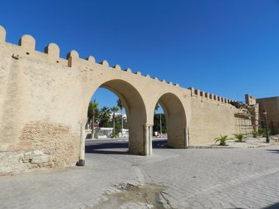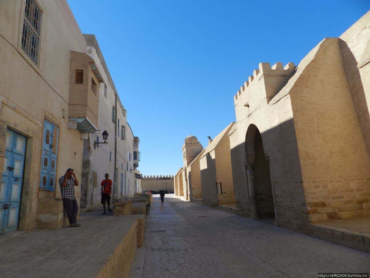 Увы, на её осмотр, как и на изучение самого Кайруана, времени уже не было. Дабы привлекать клиентов, хозяева магазина украсили свою крышу чем-то похожим на мавзолей. Туристы возле него охотно фотографируется. Однако к древностям, которыми славится Кайруан, сия конструкция не относится.Кайруану дала жизнь маленькая берберская крепость. Позже на её месте появилась цитадель византийцев. Магазин, куда завозят туристов, как и мечеть Укба, находятся внутри старого города. Где-то его крепостная стена сохранилась, а где-то её разобрали.