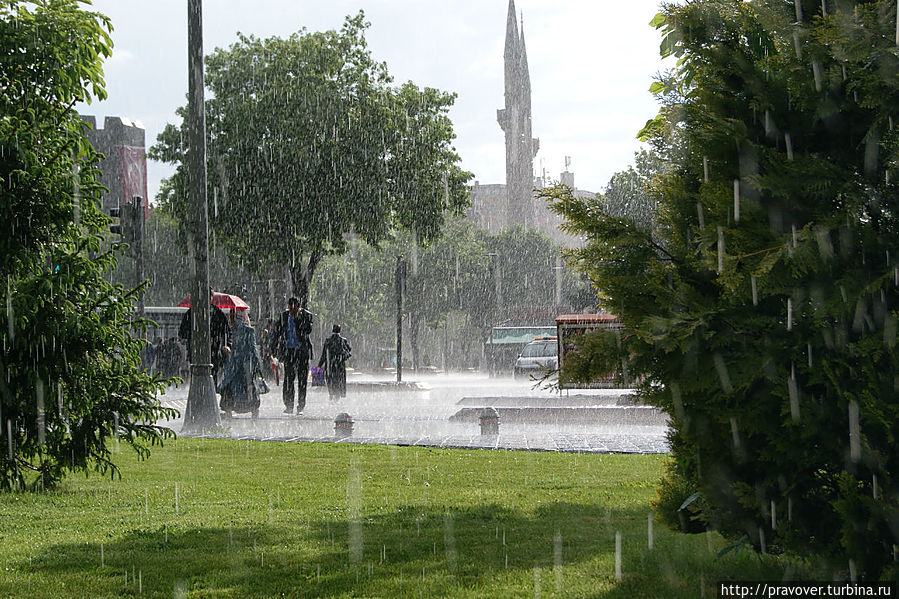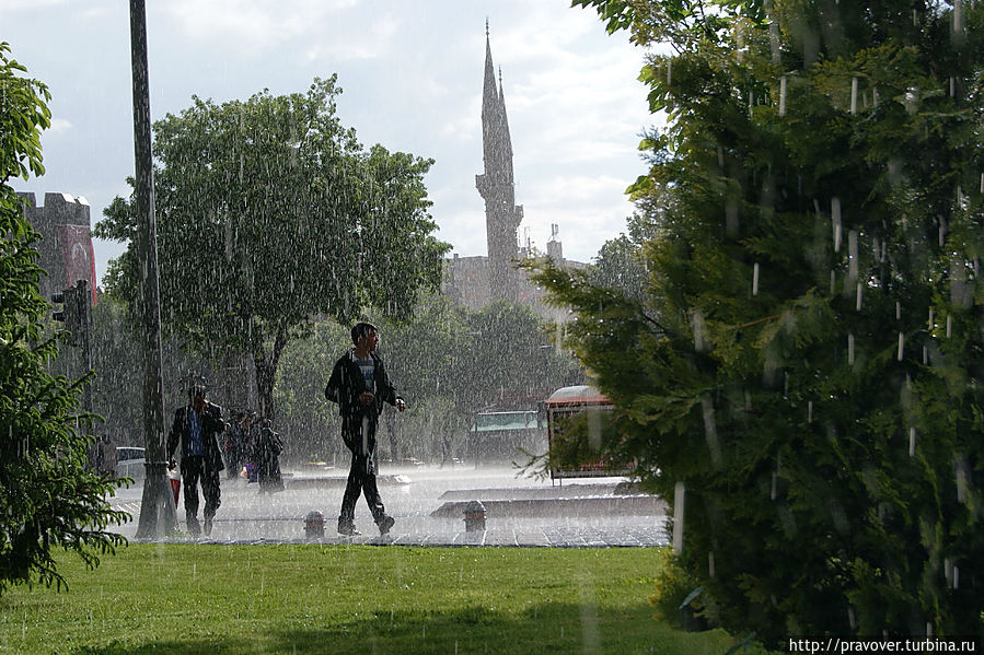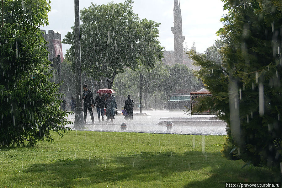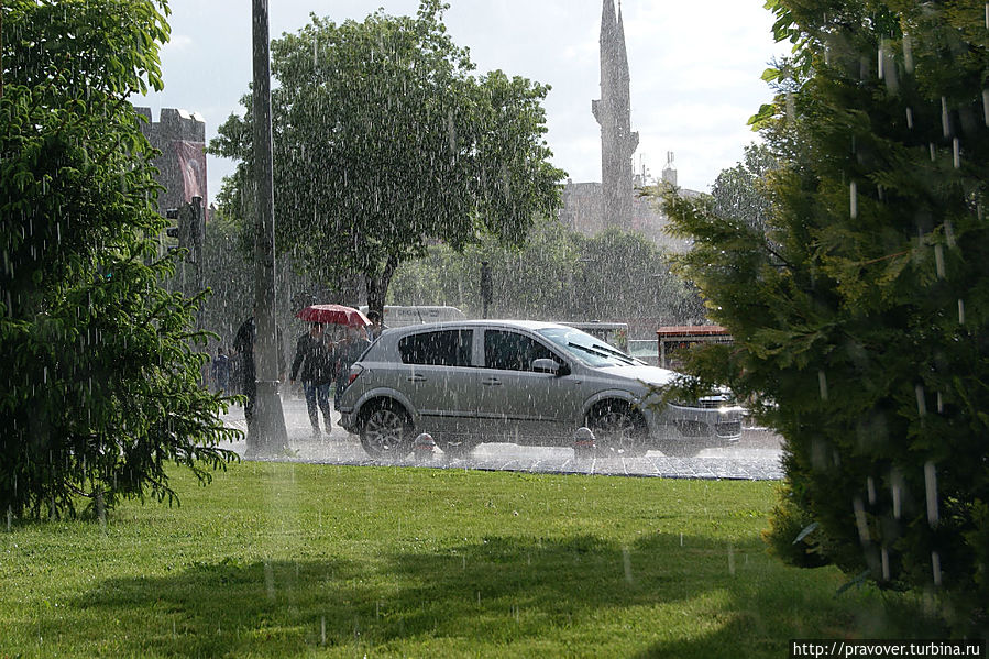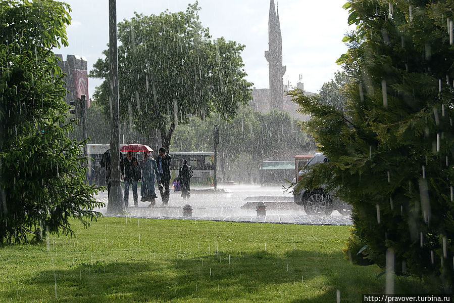 Я сделал эти снимки укрывшись под тентом, но бесстрашные турки как ни в чем не бывало гуляли под проливным дождем.