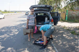 Перекладываем вещи. Нас зачем-то черт дернул взять гитару с собой. Багажник небольшой и она занимает много места. Чтобы задействовать её по полной, мы придумали интересный формат отчетов, который появится чуть позже.