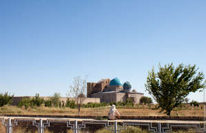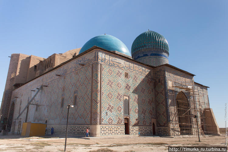 Случайно увидели фотку достопримечательности в foursquare. Решили сделать экспресс-осмотр. MapsWithMe быстро находит центральную площадь с мавзолеем, приезжаем на место и мы совершаем свою первую туристическую вылазку. Знакомая по картинкам архитектура, прекрасные паттерны и жара в 35 градусов дают понять, что мы уже близко. Осталось еще каких-то 50 км.