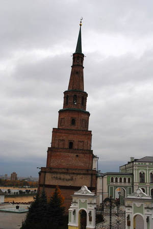 На территории казанского Кремля есть башня с непривычным русскому уху названием Сююмбике постройки аж середины 17 века. По красивой легенде одноименная не то принцесса, не то царица потребовала от влюбившегося в нее не то хана, не то князя построить самую высокую в Казани башню. А когда тот опрометчиво башню построил, принцесса сиганула с нее вниз, чтобы не попасть в лапы нелюбимого. Взглянув на архитектуру башни, сразу поймете что с реальностью легенда общего мало имеет: прыгнуть с этой башни крайне проблематично. Как бы то ни было, башня стоит уже больше трехсот лет и все это время заваливается на бок, все больше и больше походя на Пизанскую сестру.