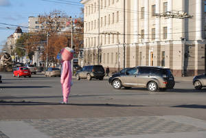 • Розовый заяц вышел на площадь перед театром Камала приветствовать проезжающих водителей