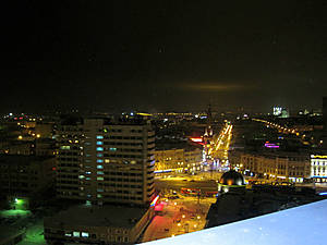 Окна номера выходят на крышу, панорама, конечно, не очень, но мы же не в окна приехали смотреть. Балкона нет, зато в конце коридора есть выход на общую лестничную площадку, где, видимо, можно покурить или полюбоваться панорамой новогодней подсветки. В номере было тепло, что особенно актуально зимой.
