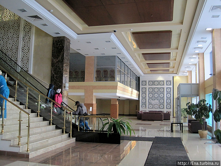 Гостиница современная, очень пафосная, ее высотное здание видно отовсюду. Расположена в центре Казани, почти рядом с пешеходной улицей Баумана. Вполне соответствует заявленным 4 звездам. Она новая, более того – на крыше отеля расположена единственная в городе вертолетная площадка (видимо, на случай, если в Казань решит заглянуть Джеймс Бонд xD). К зданию прилегает ТЦ «Кольцо», в него можно попасть прямо из холла гостиницы (а это правда удобно, т.к. в магазинах зимой было жарко, а мы прямо из отеля ходили за продуктами, без курточек). В 17-этажном здании отеля есть лифты и даже эскалатор. Уютные просторные холлы с мягкой мебелью, все сверкает, по-новогоднему украшено, на первом этаже стоит наряженная елка. На втором этаже есть бар и ресторан.