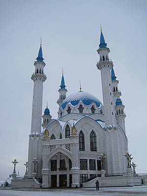 Бело-голубая Кул Шариф со стройными свечками-минаретами выглядит чудесной восточной сказкой. И еще напоминает… космический корабль! Что бы ни говорили критики, а архитекторам удалось соединить легкость и ажурность с монументальностью и торжественностью. Мечетью можно любоваться бесконечно. Не знаю, как с религиозной точки зрения, а с архитектурной, на мой взгляд, решение удачное. Мечеть не выглядит новоделом, как ни странно, абсолютно лишена пафоса, на удивление органично вписывается в комплекс Кремля. Недаром ее изображение повсеместно встречается на сувенирной продукции, это по праву визитная карточка Казани. Вот на этой замечательной ноте, отщелкав кучу кадров с мечетью Кул Шариф, мы покидаем Казанский Кремль.