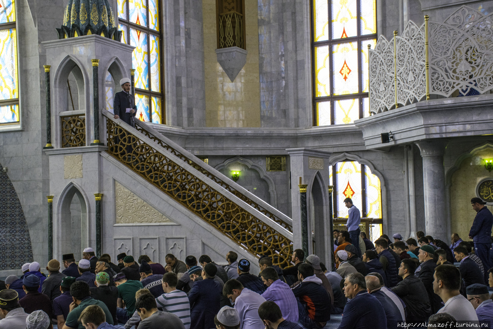 Мечеть является главной джума-мечетью всего Татарстана и Казани. Один раз в неделю (всего лишь одни раз и не громко), в пятницу, с минаретов мечети звучит призыв (азан) к молитве. Многочисленные верующие стекаются на молитву со всех концов Казани в мечеть, построенную в год тысячелетия Казани в 2005 году, на месте старой мечети, разрушенной войсками царя Ивана Грозного при штурме Казани в 1552 году. Все остальные дни мечеть открыта для посещения туристами. Мне посчастливилось оказаться в Кремле именно в пятницу и снять намаз. Верующие отнеслись к съемкам спокойно, некоторые спрашивали из какого я издания. Службу вёл Хасанов Ильфар-Хазрат. Служба была на арабском и татарском языках.