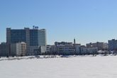 А вот самый мощный фонтан Казани, расположенный на озере Кабан, не функционировал. Только основу было видно.