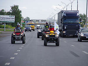 В Казань колонна квадроциклов въехала примерно в 12 часов ночи, «дружелюбные» гаишники остановили участников, видимо только для того чтобы поближе рассмотреть технику и уставших, грязных людей.