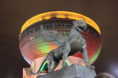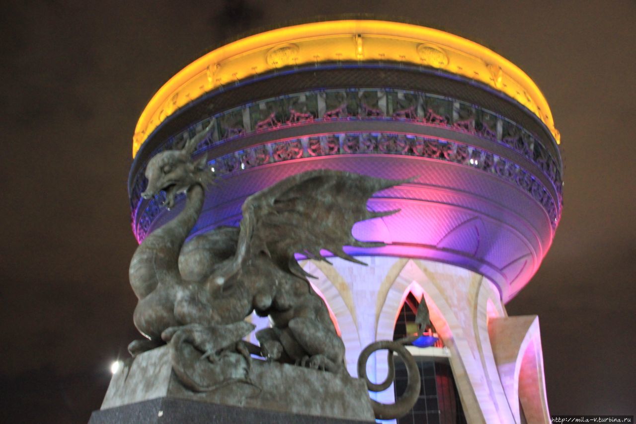 Вечерняя подсветка обалденная!!Здание имеет очень оригинальную архитектуру и напоминает казан, традиционный азиатский литой котел над пылающим огнем. Имеется три лифта ведущие на смотровую площадку, которая находится на высоте 32 метров над уровнем моря. Здание имеет богатую вечернюю подсветку, которая в т. ч. обыгрывает огонь под котлом.
