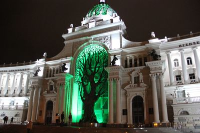 Экскурсовод сказала ,что билеты туда просто не купить и ей самой даже пришлось завести блат в кассе))) чтобы покупать билеты.Репертуар театра включает в себя более 40 спектаклей различного жанра и стиля на русском и татарском языках. Здание театра очень красивое!!!