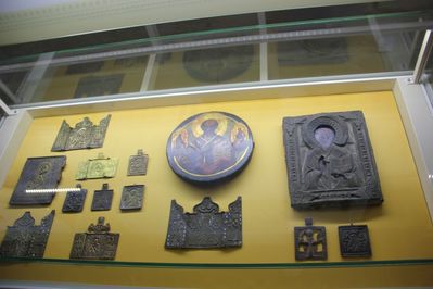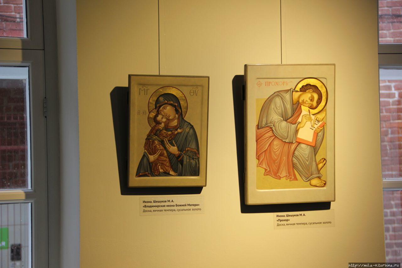 Здесь есть уникальные картины-иконы написанные на линолеуме. Конечно реставраторы очень постарались и восстановили по возможности эти шедевры!