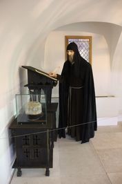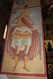 Изображение святого воина Христофора,покровителя всех путешественников,здесь изображено с лошадиной головой( в Европе его изображают с песьей головой).
