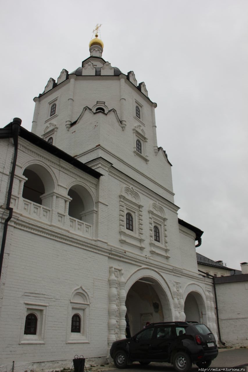 Самая древняя постройка монастыря — это деревянная Троицкая церковь — единственное сохранившееся до наших дней сооружение из тех, которые были срублены под Угличем и доставлены к устью Свияги весной 1551 года. Вот уже почти пять столетий насчитывает история этой церкви, которая была свидетелем многих событий, происходивших в Свияжске. Пожары и время пощадили её, и теперь она представляет собой уникальный образец древнерусского зодчества. По форме церковь святой Троицы напоминает крест — символ христианской веры, обращённый на восток. Внутри помещение церкви больше похоже на деревенскую избу. Деревянные скамейки, массивные двери, спокойное освещение, аромат некрашеного дерева создают атмосферу домашнего уюта. Вся суета внешнего мира вдруг отступает. Создается ощущение, что после долгих бесцельных скитаний ты, наконец, вернулся туда, где тебя любят и ждут, где всё поймут и простят, согреют лаской и заботой.