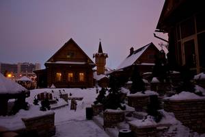 На островке исторической татарской деревни имеется все для того чтобы турист не скучал: бильярд, боулинг и чего-нибудь выпить.
