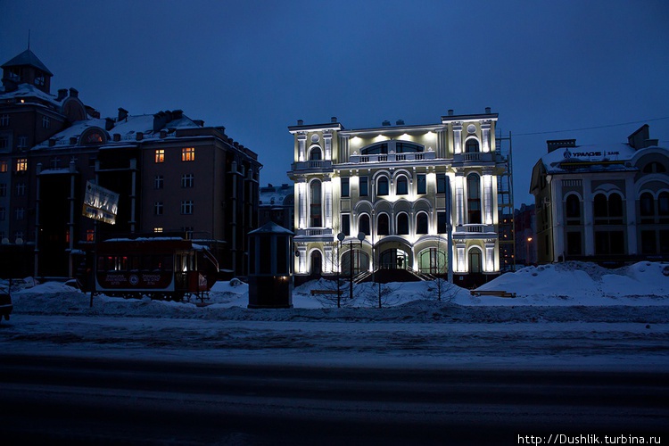 Пока ходили смотрели трамвайчики, настал вечер, стала загораться подсветка зданий.