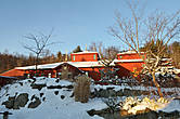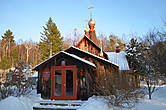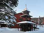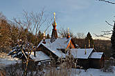 Но солнце уже садится, начинает примерзать и мы спешим зайти погреться в храм. Вот он, главный храм монастыря Church of Holy Wisdom, Храм Святой мудрости. Хорошее название у храма, да ещё и необычное. Знаю всего лишь ещё один такой храм — Айя София в Стамбуле. И второй здесь, на американской земле, затерянный в лесах штата Нью-Йорк, намного моложе своей византийской тёзки, но для местных монахов и монашек не менее значимый, ибо построенный он их собственными руками более тридцати лет назад.