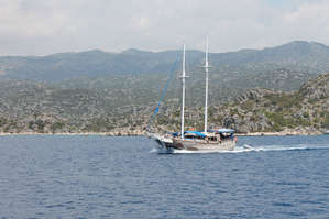 По дороге к этому городу открываются замечательные морские виды. Корабль проходит слияние двух морей — Средиземного и Эгейского. По пути встречаются другие шхуны.